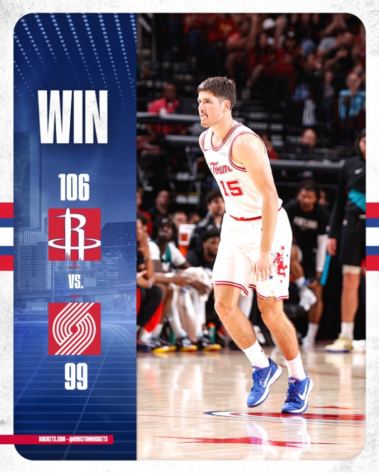 3月7日讯 NBA常规赛,火箭106-99力克开拓者。