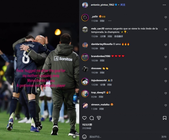 平图斯赛后更新社媒,他写到:进球后,巴尔韦德拥抱了我,为了一起告慰我去世的母亲。巴尔韦德你是一名真正的绅士和极其出色的运动员。