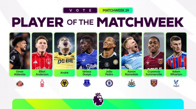 3月6日讯 英超第29轮比赛于北京时间今天凌晨全部结束,英超联赛官方公布了本轮最佳球员候选,蓝军前锋若昂·佩德罗、纽卡门将拉姆斯代尔、水晶宫中场沃顿在列。
