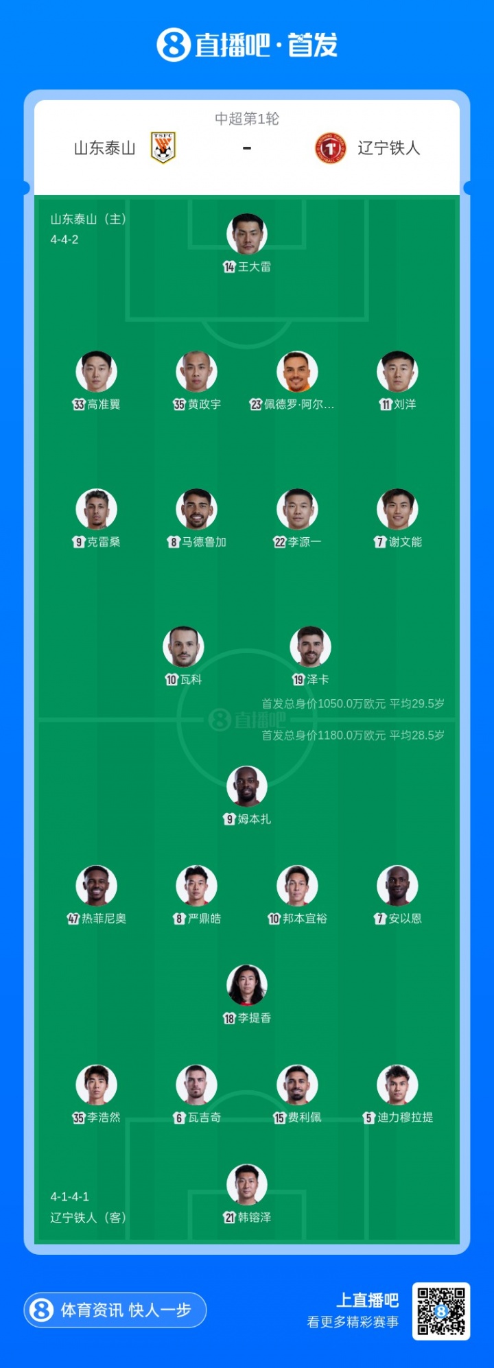 上赛季山东泰山排名中超第5名,辽宁铁人则是作为中甲冠军升级本赛季中超。新赛季泰山冬窗0支出,外援方面仅更换了一人,新援阿尔瓦罗顶替了洛佩斯的位置。辽宁铁人则是花费30万欧从博塔弗戈租借外援热菲尼奥,12.5万欧签下张洪福,还签下元敏诚、陈彬彬、李提香等球员。